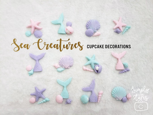 36 Underwater Wonderland, Sea creatures cupcake topper, girl Birthday, Little Mermaid, Under the sea cake decoration