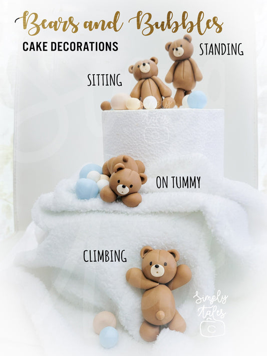 4 mini Bear with 90 bubbles cake decoration, fondant topper, Birthday Cake Topper, girl boy Birthday, Baby Shower, Gender Reveal