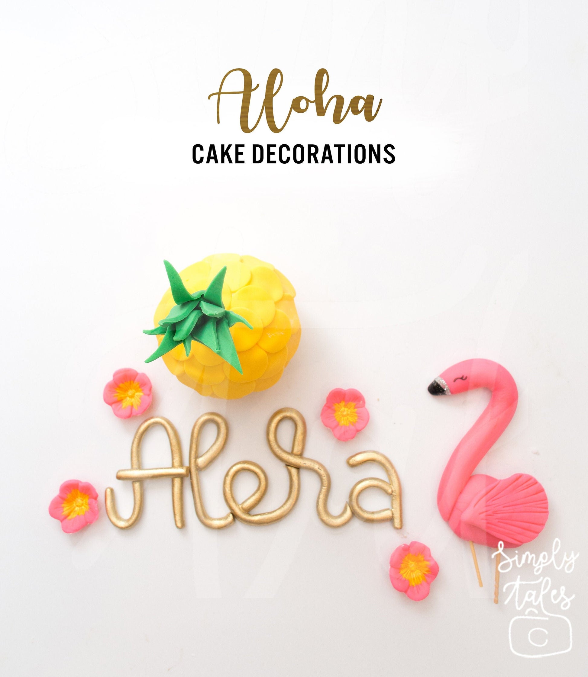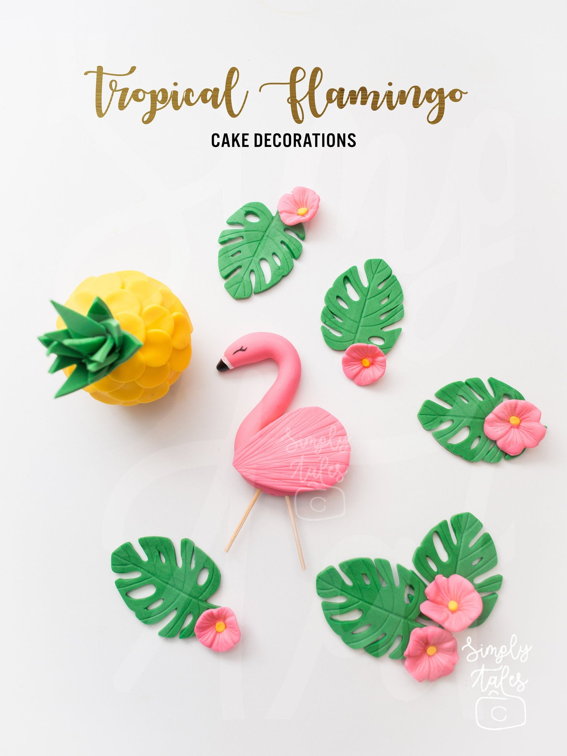 1 set Hawaiian Aloha Flamingo edible cake topper, Tropical party, Summer celebration, fondant cake decorations, Pineapple Plumeria Monstera