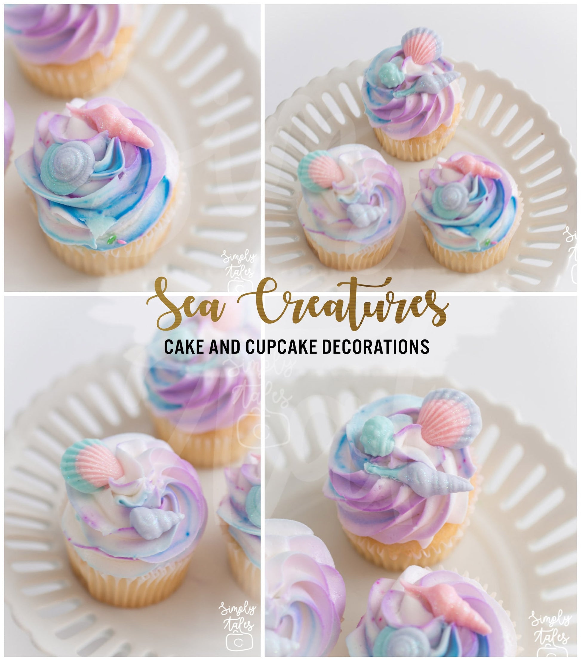 36 Underwater Wonderland, Sea creatures cupcake topper, girl Birthday, Little Mermaid, Under the sea cake decoration